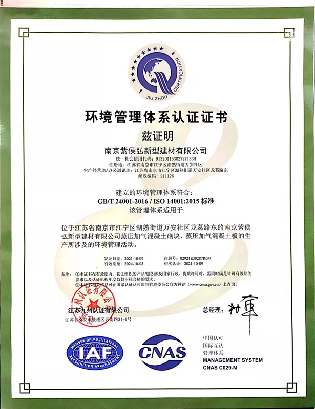 環(huán)境管理體系認(rèn)證證書