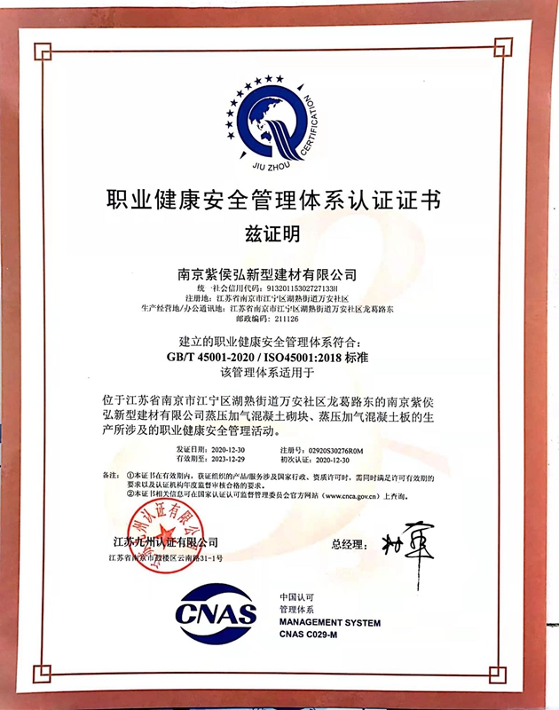 職業(yè)健康管理體系認(rèn)證證書