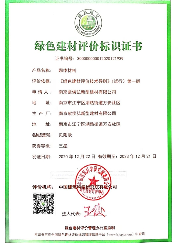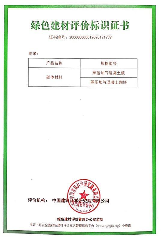 綠色建材評(píng)價(jià)標(biāo)識(shí)證書